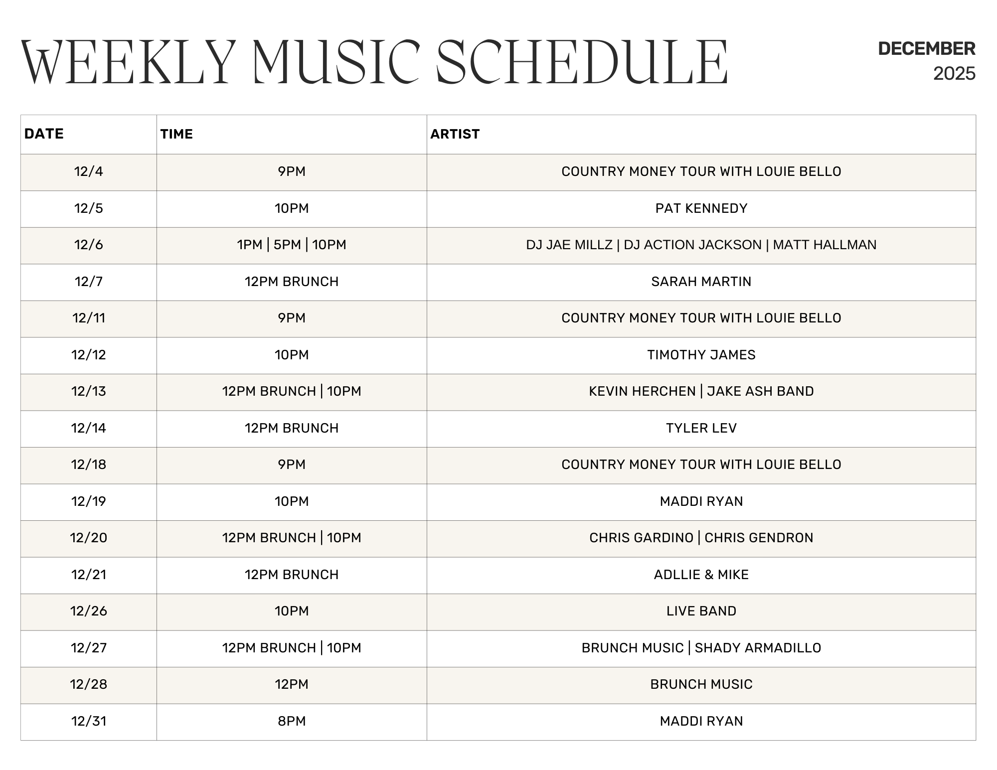 December Music Schedule